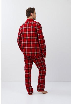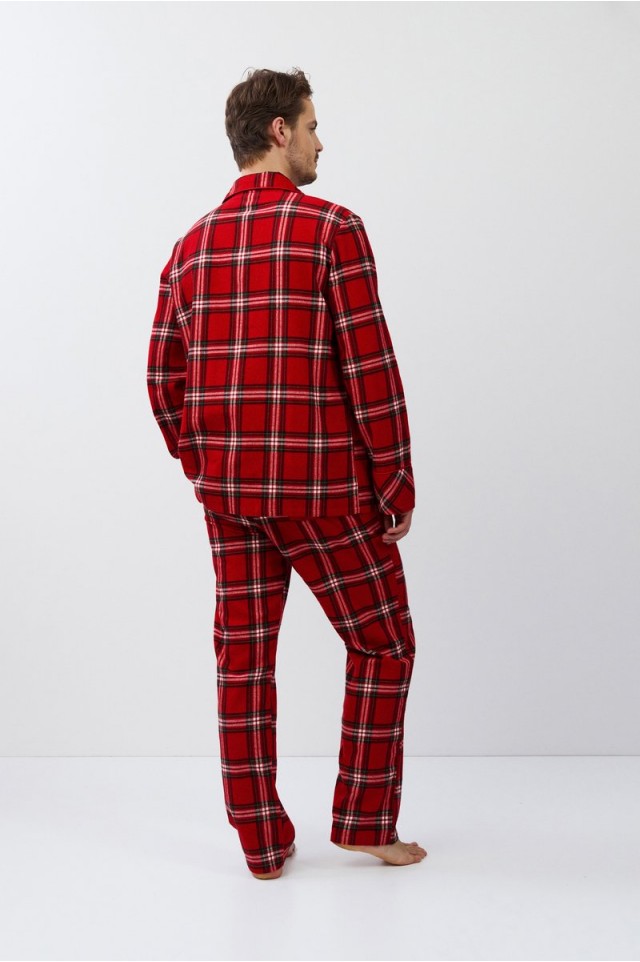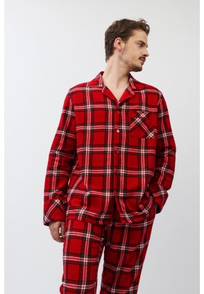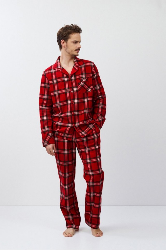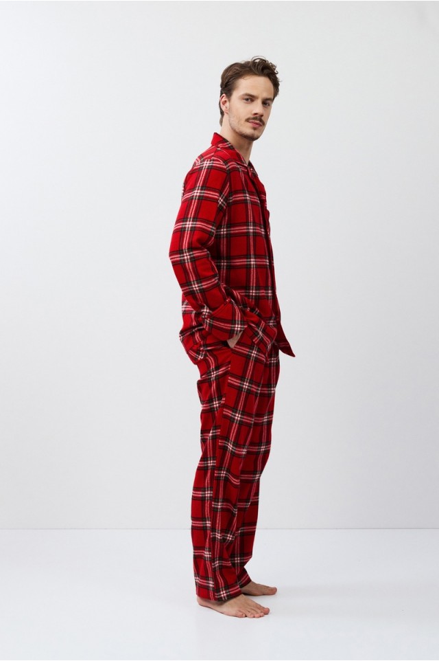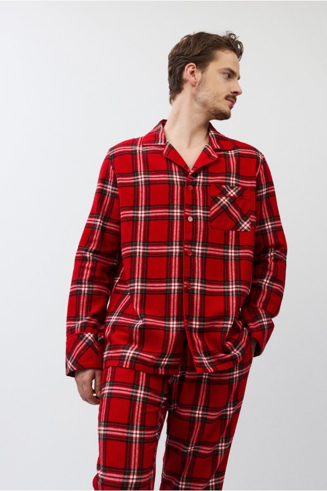 Пижама мужская со штанами BENNY для вашего ночного комфорта. Пижама выполнена из хлопковой фланели с добавлением люрексовой нити. Рубашка на пуговицах, с длинными рукавами, отложным воротником и нагрудным карманом. Окантовка дополняет и украшает комплект. Штаны длинные, прямого кроя, с эластичным поясом с завязкой и боковыми карманами. Расслабьтесь с максимальным комфортом и стилем в пижаме BENNY.