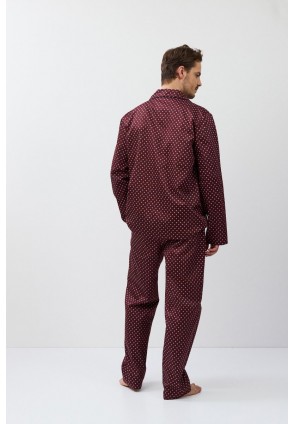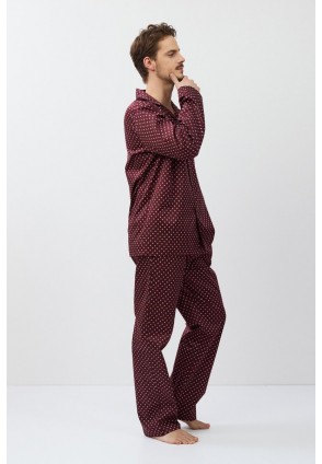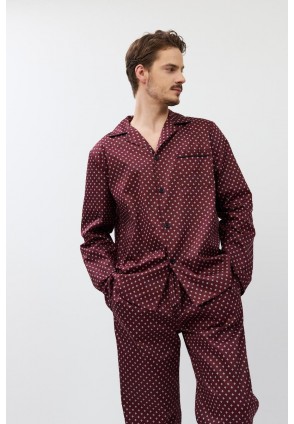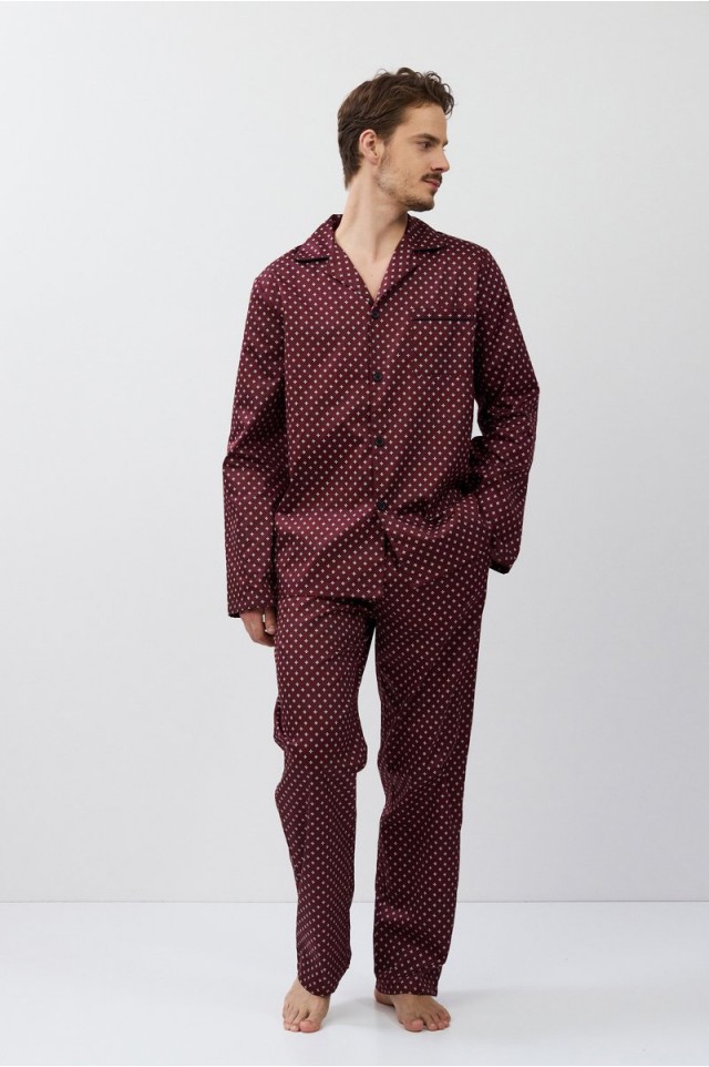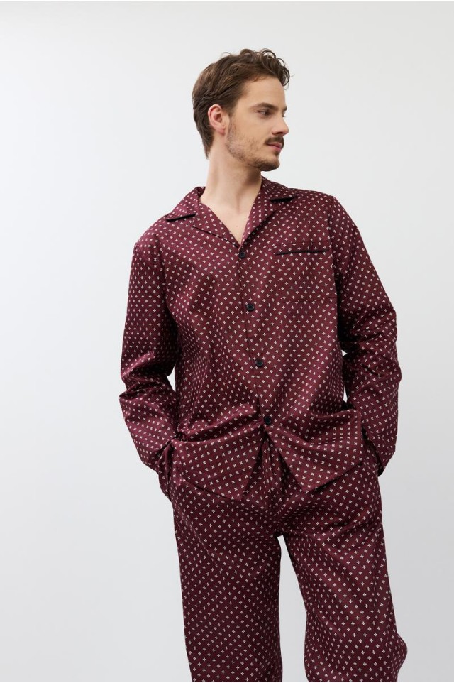Представляем вашему вниманию длинную пижаму GRANT, идеальный вариант для ночного отдыха. Рубашка с длинными рукавами, на пуговицах, острым V-образным вырезом горловины и нагрудным карманом с левой стороны. Брюки прямого кроя с боковыми карманами. Изделие выполнено из шелковистого текстильного хлопка.