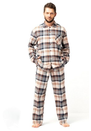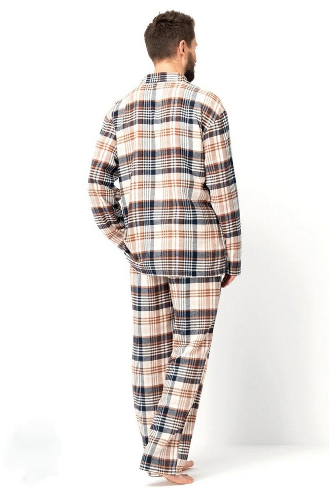 Классическая мужская фланелевая пижама. Теплая и удивительно приятная на ощупь фланелевая ткань согреет ваше тело холодными зимними вечерами. Натуральная фланель поддерживает здоровье осенью и зимой. 100% высококачественные хлопковые волокна в сочетании с правильной строчкой и нитками обеспечивают прочное и долговечное использование. Классический крой, который можно застегнуть на шее. Декоративный карман на груди. Классические брюки прямого покроя, штанины на талии имеют удобную, мягкую резинку. Глубокие карманы по бокам. Вечная элегантная пижама! Мягкая, дающая свободу вашему телу, обеспечивает спокойный, комфортный сон. Выкройка доступна в размерах от S до 4 XL!