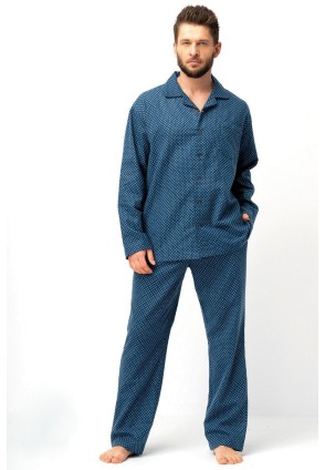 Удобная и элегантная мужская пижама-костюм. Удивительно приятная на ощупь и очень теплая ткань SOFT TOUCH FLANNEL согреет ваше тело холодными зимними вечерами. Натуральная фланель поддерживает здоровье осенью и зимой. 100% высококачественные хлопковые волокна в сочетании с правильной строчкой и нитками обеспечивают прочное и долговременное использование пижамы. Классический рубашечный крой, который можно застегнуть до шеи. Рукава ниже щиколотки отделаны простым и удобным подворотом. Брюки с мягким эластичным поясом и удобными карманами - проверенный годами крой. Прямые штанины обеспечивают свободу во время сна. Узор напечатан на ткани, делая структуру материала более плотной и компактной. Идеально подходит в качестве подарка любимому человеку - упакован в красивую, декоративную коробку! Доступно в размерах от S до 4 XL.