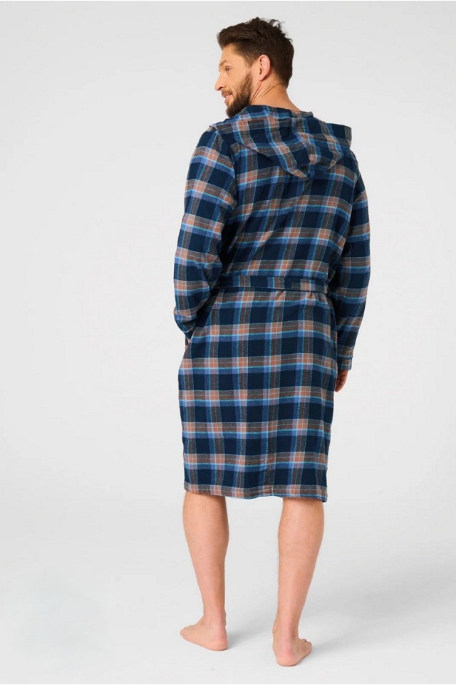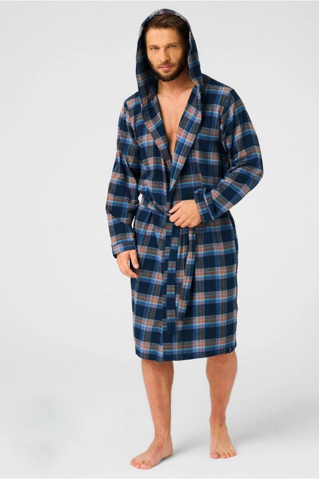 Легкий всесезонный мужской фланелевый халат. Красивое сочетание насыщенного темно-синего и шоколадно-коричневого цветов подарит вам и вашему телу отличное настроение. Изготовлен из очень мягкой на ощупь и теплой фланелевой ткани, которая быстро согреет ваше тело прохладными вечерами. Традиционный крой по линии плеча делает халат прилегающим к линии тела и мягко облегает фигуру. Очень удобный и практичный - имеет капюшон, глубокие боковые карманы и пояс. Незаметная пуговица на шее, что позволяет застегивать халат высоко и закрывать грудь. Длина ниже колена. 100% высококачественные хлопковые волокна в сочетании с соответствующей строчкой и нитками обеспечивают комфортное, прочное и долговременное использование. Благодаря используемым хлопковым волокнам халат быстро впитывает влагу и пропускает воздух к коже, идеально подходит для влажного тела. Он легкий и занимает мало места - отлично подходит для путешествий или в качестве чехла для бассейна/сауны. Вневременная, натуральная и полезная фланель — идеальная замена традиционным халатам — она почти незаметна, но при этом очень теплая.