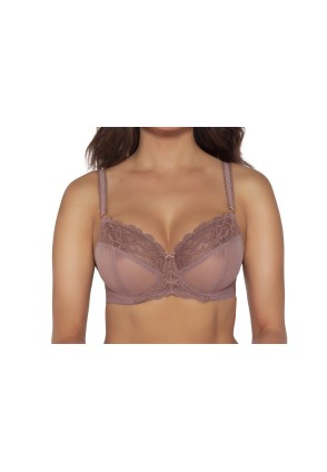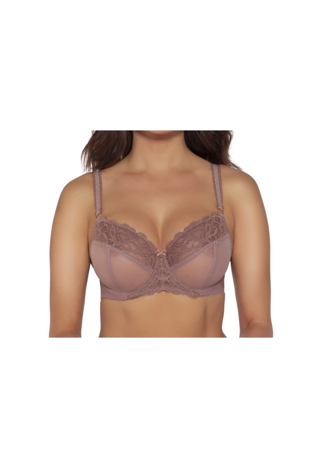 Бюстгальтер 1993 в цвете Wood rose (Древесная роза) выполнен на основе модели 1030, с шитыми мягкими чашками на косточках, нижняя часть чашки из 2 слоев сетки, верхняя часть чашки из кружевного полотна с люрексом. Окантовка косточек на чашках и вертикальные швы декорированы строчками с люрексом. Бретельки регулируются по длине, не отстёгиваются. На спине застёжка на удлинитель, количество крючков в ряду застёжки увеличивается пропорционально размеру бюстгальтера. Фурнитура цвета розового золота. Бюстгальтер идеально сочетается с трусиками из коллекции 1990, 1991, 1992, 1993.