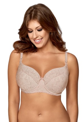 Бюстгальтер 925/4 U для кормления ребенка грудью, на косточках, чашки шитые, на тонком поролоне, внутренняя часть проложена хлопоковым трикотажем, внешний слой и спинка из жаккардовой ткани. Бретельки не отстегиваются, регулируются по длине. На спине застёжка на удлинитель.
