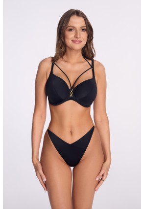 Трусы бразильяна женские арт. SF254/17 для пляжного отдыха спереди на стрейч подкладке, V-образный вырез визуально удлиняет ноги и красиво подчеркивает талию, по бокам декоративная отделка, фурнитура металлическая цвета желтого золота. Идеально подходят как для принятия солнечных ванн, так и для пляжного отдыха.