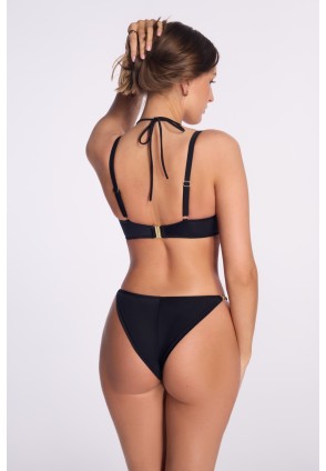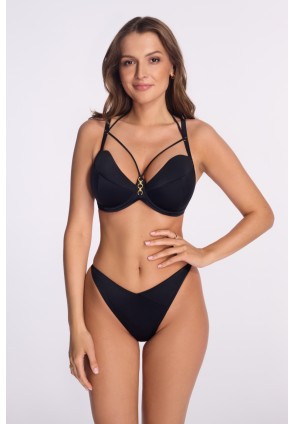 Трусы бразильяна женские арт. SF255/17 для пляжного отдыха спереди на стрейч подкладке, V-образный вырез визуально удлиняет ноги и красиво подчеркивает талию, по бокам декоративная отделка, фурнитура металлическая цвета желтого золота. Идеально подходят как для принятия солнечных ванн, так и для пляжного отдыха.
