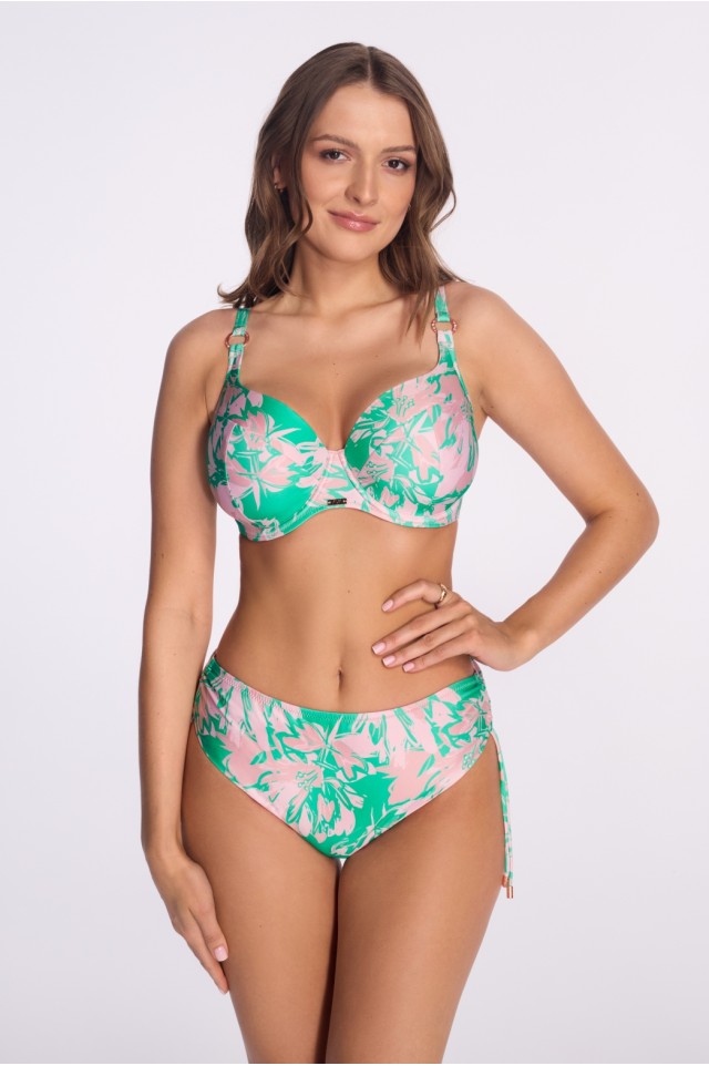 Трусы классические женские арт. SF261/2 для пляжного отдыха выполнены в цвете GREEN MIRAGE, спереди на стрейч подкладке, по бокам корректирующая высоту кулиска, фурнитура металлическая цвета розового золота. Идеально подходят как для принятия солнечных ванн, так и для пляжного отдыха, Сочная зелень и вдохновленные природой растительные узоры привлекают внимание и добавляют нотку свежести.