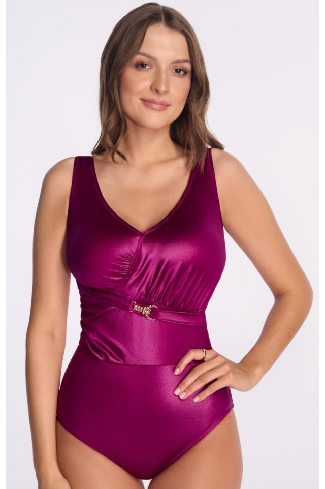 Купальник совместный арт. SKJ68 выполнен из высококачественной ткани с легким атласным блеском, насыщенного оттенка фуксии (MAGENTA): лиф купальника мягкий , на запах, к лифу пришиты поролоновые вкладыши, под грудью корректирующая резинка, широкие бретели разгружают позвоночник. Передняя часть купальника продумана до мелочей: вырез-запах деликатно обнажает грудь, создавая элегантный эффект. Мягкие сборки формируют верхнюю часть тела, а широкий пояс под грудью визуально утончает талию, золотистый ювелирный акцент добавляет изысканности