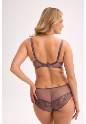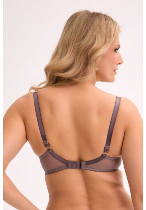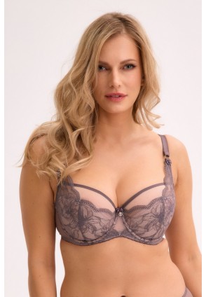 Бюстгальтер 1314 Kalina PU выполнен на косточках, чашки шитые, нижняя часть на тонком поролоне телесного цвета, внутренняя сторона прошита хлопковым трикотажем, верхняя часть шачек из сетки, внешняя сторона чашек из кружевного полотна, спинка из двух слоев сетки. Бретельки не отстёгиваются, регулируются по длине, на спине застёжка - удлинитель на крючках, фурнитура металлическая цвета розового золота. Бюст сочетается с трусами 1314 Kalina, 1315 Liora.