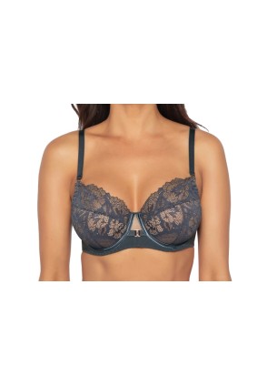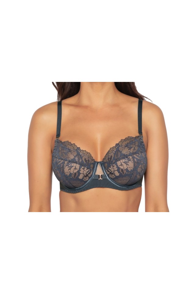 Бюстгальтер 1937 PU выполнен в цвете Antracyt на основе модели 1030, на косточках, чашки шитые, нижняя часть на тонком поролоне телесного цвета, внутри проложена хлопковым трикотажем, снаружи из гипюра, верхняя часть чашки из гипюра с телесной сеткой, особый шарм придают атласные ленты на косточках. Бретельки не отстёгиваются, регулируются по длине, фурнитура цвета меди, пояс из эластичного сетчатого полотна. Дополнительным украшением бюстгальтера являются золотые пряжки, усыпанные цирконами, расположенные на бретельках. На спине застёжка на удлинитель, количество крючков в ряду застёжки увеличивается пропорционально размеру бюстгальтера. Непревзойденная конструкция модели 1030 является гарантией комфорта и правильной стабилизации груди, разгружая спину и плечи. Бюстгальтер идеально сочетается с трусиками арт. 1937.