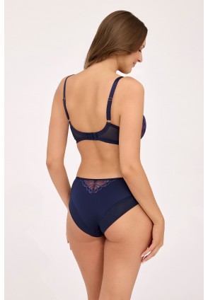 Бюстгальтер АVA 2183 M SENSATION выполнен на основе модели 1824 в цвете navy blue (темно-синий), на косточках, чашки мягкие, шитые из сетки, с устойчивой боковой панелью из тонкого поролона идеально собирают грудь из-под подмышек, естественно округляя ее, верхняя часть выполнена из тюля, чашки покрыты восхитительным темно-синим кружевом с освежающим цветом фуксии, которое изящно смотрится на коже. Пояс из эластичного сетчатого полотна. Бретельки не отстёгиваются, регулируются по длине, на спине застёжка - удлинитель на 2 и 3 крючках, фурнитура металлическая цвета желтого золота. Бюстгальтер идеально комплектуется трусиками арт. 2182, 2183.