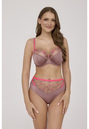 Бюстгальтер АVA 2217 PU в цвете moccha rose (Мокко-розовый) выполнен на основе бюста 1030 на косточках, чашки шитые, нижняя часть на тонком поролоне, внутренняя сторона прошита хлопковым трикотажем, верхняя часть чашки из сетки, расшитой цветами, внешняя сторона из гладкая из микрофибры. Бретельки не отстёгиваются, регулируются по длине, на спине застёжка - удлинитель на 2 или 3 крючка, фурнитура металлическая цвета желтого золота. Пояс из стабилизирующей сетки. Прозрачный тюль, расшитый мелкими, насыщенно-розовыми цветами, добавляет свежести и легкости, а контрастные бретельки и отделка добавляют модный и яркий штрих. Бюстгальтер идеально комплектуется трусиками арт. 2217, 2218.