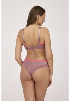 Бюстгальтер 2218 в цвете moccha rose (Мокко-розовый) выполнен с шитыми из двух слоев нежного тюля мягкими прозрачными чашками на косточках, украшенными нежной цветочной вышивкой, что придает легкость и девичье очарование. Бретельки регулируются по длине, не отстёгиваются. Пояс из стабилизирующей сетки. На спине застёжка на удлинитель, количество крючков в ряду застёжки увеличивается от 2 до 3 пропорционально размеру бюстгальтера. Фурнитура металлическая цвета желтого золота. Модель сочетает в себе романтизм и нотки современности: нежный кофейно-молочный оттенок разбавлен насыщенным розовым, который добавляет свежести и энергии. Бюстгальтер идеально сочетается с трусиками из коллекции 2217, 2218.