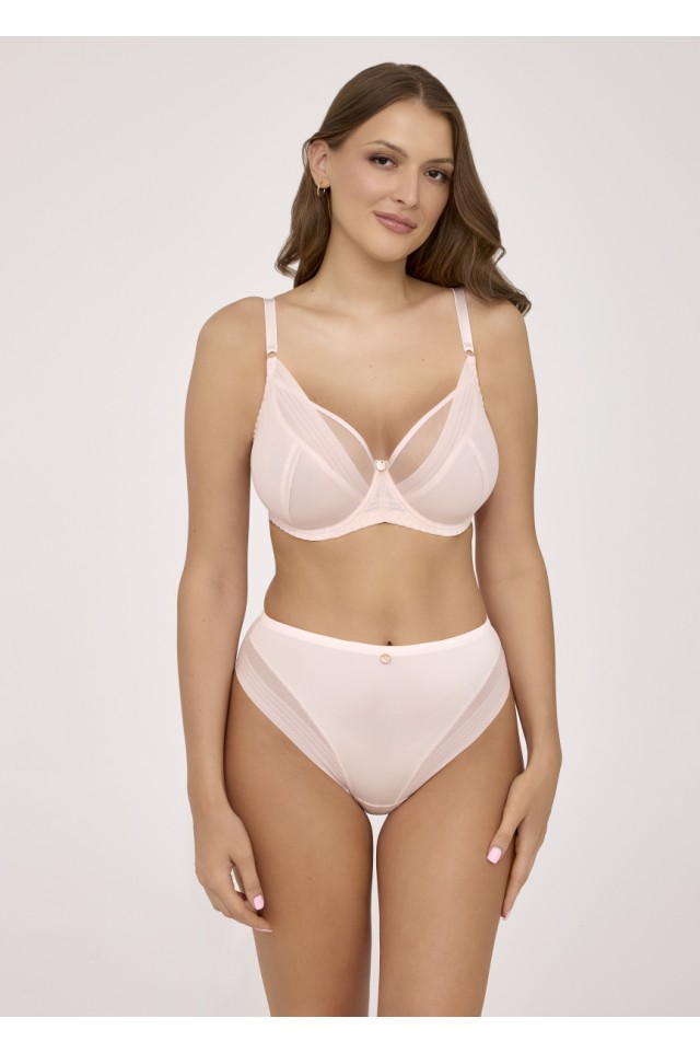 Бюстгальтер 2231 M в цвете powdery (пудровый) из коллекции RITUAL выполнен на основе бюста 1824 на косточках, чашки мягкие, шитые из сетки разных видов, не сшитыми между собой, спинка из стабилизирующей сетки, бретельки не отстёгиваются, регулируются по длине. На спине застёжка на удлинитель на 2 или 3 крючка. Фурнитура металлическая цвета розового золота. Пастельный пудровый оттенок придает модели романтичность и женственность, сохраняя при этом элегантность и современность. Бюстгальтер идеально сочетается с трусиками арт. 2231.