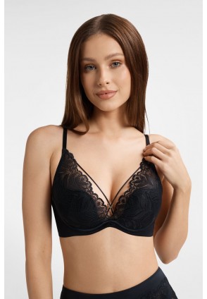 Кружевной бюстгальтер со съемным пуш-ап на кости. Чашка на базе Claudia. С глубоким декольте. Несъемные регулируемые бретели. Внутренняя поверхность чашек хлопковая.