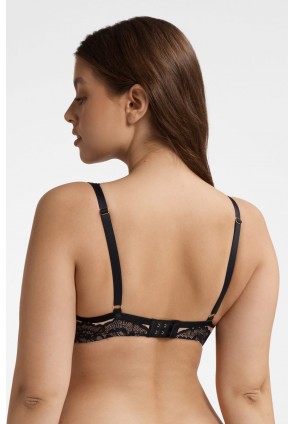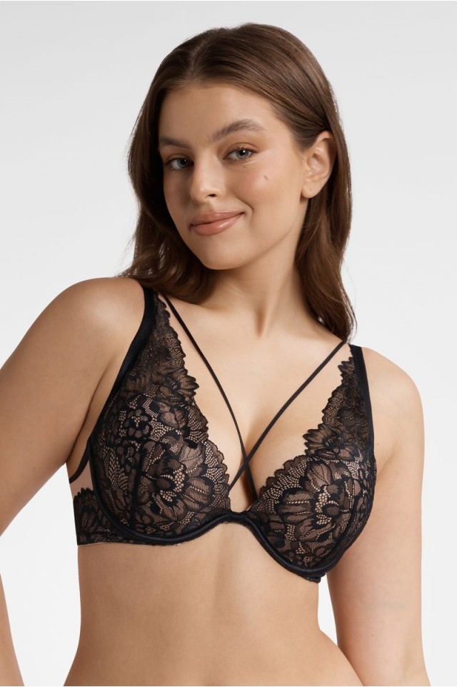 Бюстгальтер KATIE от европейского производителя Esotiq. Бюстгальтер с чашкой пуш-ап на кости. С глубоким декольте дополненым стрепами. Выполнен из кружева и микротюли. Трехступенчатая застежка на спине. Регулируемые бретели.