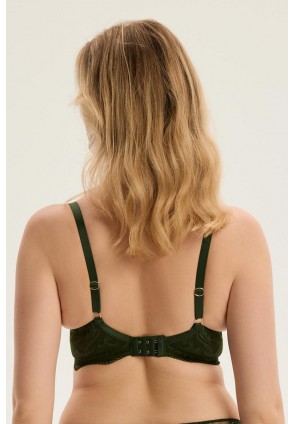 Бюстгальтер Kavi излучает утончённый романтизм и лёгкость. Чувственная прозрачная чашка с лиственным плетением окутывает словно нежная дымка, а блестящие края мягко подчёркивают зону декольте. Конструкция на чашке Avena с характерными двумя застёжками и горизонтальным вырезом, обеспечивает естественное положение груди и комфорт в течение всего дня. Это идеальное решение для женщин, которые ценят красоту в мягкой и удобной форме. Мягкая чашка на кости. Несъемные регулируемые бретели. Золотые детали. Декор - подвеска.