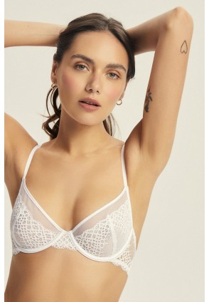 Бюстгальтер от европейского производителя Esotiq. Мягкая чашка на кости. На базе BIEN. Несъемные регулируемые тонкие бретели. Золотые детали. Чашки покрыты нежным кружевом на подкладе из микросетки. Состав: кружево 86% полиамид, 14% эластан; сетка 89% полиэстер, 11% эластан.