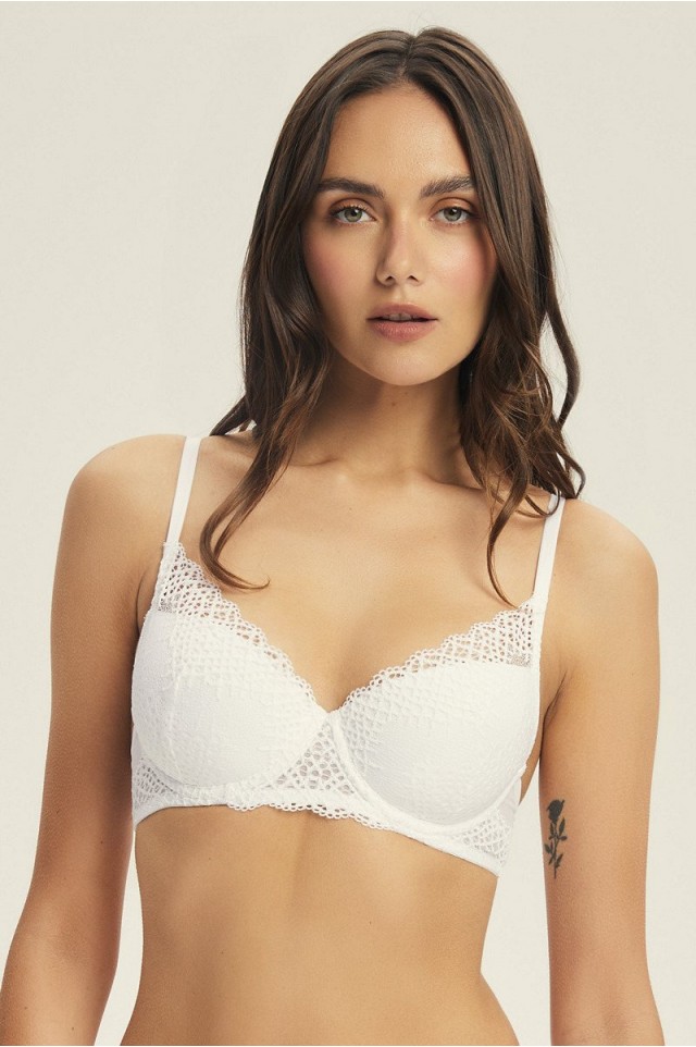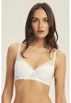Бюстгальтер от европейского производителя Esotiq. Поролоновая чашка на кости со съемным вкладышем пуш-ап, на базе Kassidy. Несъемные регулируемые бретели. Золотые детали. Внутренняя поверхность чашек хлопковая. Чашки покрыты нежным кружевом. Стан кружевной на подкладе из микросетки. Состав: кружево 86% полиамид, 14% эластан; сетка 68% полиэстер, 32% эластан; подклад чашки 100% хлопок.