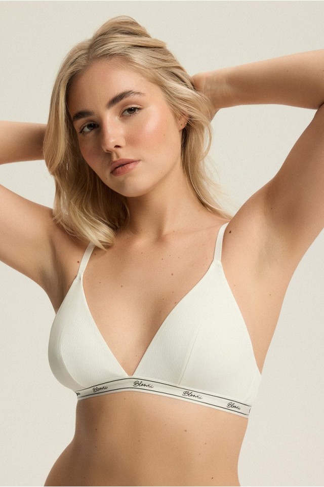 Свежесть и утонченность - бюстгальтер бралет Abria в белоснежном оттенке - это сочетание легкости и естественной красоты. Треугольные чашечки мягко облегают грудь, а отсутствие косточек обеспечивает полный комфорт при ношении. Съемные вкладыши позволяют регулировать уровень поддержки и форму, благодаря чему модель становится необычайно универсальной. Тонкий ремешок с незаметным логотипом подчеркивает минималистичный характер и придает изделию слегка спортивный вид, бретели позволяют закрепить их на плечах в стиле «racerback», благодаря чему модель красиво подчеркивает линию плеч в топах с вырезом. Текстурная ткань в мелкий рубчик.