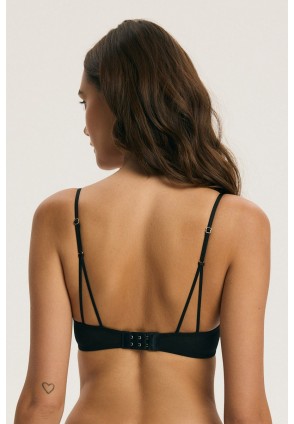 Мягкий бюстгальтер CMON имеет линию топа и чувственно облегающую переднюю часть, которая рисует растительный кружевной мотив на коже в тренде plantopia. Мягкие чашки естественным образом формируют бюст, а скрытые по бокам внутренние вставки из тонкой сетки собирают его к центру, оставляя элегантный, гармоничный профиль. Тонкие реснички по краям кружева добавляют легкости. Конструкция на косточках держит форму уверенно и ненавязчиво, поэтому модель отлично подходит для обладательниц малого и среднего бюста.