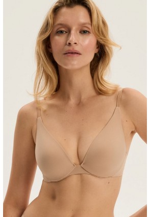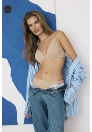 Чувственный минимализм в лучшем виде. Бежевый бюстгальтер Cleary - идеальное сочетание комфорта и женственного изящества. Гладкие чашки из тонкого поролона на косточках прекрасно собирают и поддерживают бюст, создавая естественную округлую зону декольте. Тонкие регулируемые бретели обеспечивают индивидуальную посадку, а ультратонкая ткань обволакивает тело, как вторая кожа. Невидимый под одеждой, он является идеальной основой для повседневных образов - от легких блузок до облегающих платьев. Нежный подклад чашки из 100% полиэстера. Бюст создан на базе Sun/Fanaya.