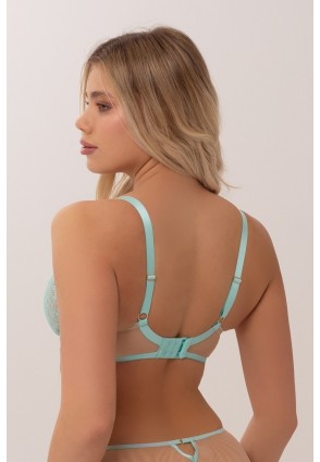 Бюстгальтер AQUAMARINE Softfullcup от европейского производителя Subtille. Выполнен из микросетки и нежного кружева. Мягкая чашка на кости в конструкции S-01, не глубокий, балконированный. Несъемные регулируемые бретели. Золотые детали. Фирменный логотип Subtille.