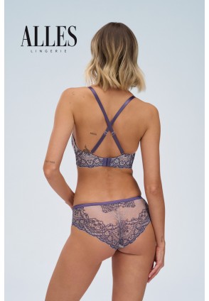 Бюстгальтер BaroqueUltra P-UP выполнен на основе бюста Splendore P-UP на косточках (на каркасах), с дополнительными боковыми поддержками, чашки шитые на тонком поролоне телесного цвета, со съёмными пуш-ап вкладышами, внешняя сторона чашки и спинка из кружева, пояс продублирован эластичной телесной сеткой. Бретельки отстёгиваются на спинке, регулируются по длине. На спине застёжка на удлинитель, количество крючков в ряду застёжки, увеличивается пропорционально размеру бюстгальтера, фурнитура металлическая цвета розового золота. Бюстгальтер идеально сочетается с трусиками BaroqueUltra. Оттенок ультрафиолета, переливающийся в искусно сотканных нитях, создаёт гипнотический узор на лёгком, почти невесомом фоне изысканного голубого цвета. Этот оттенок, приглушённый морскими полутонами, придаёт модели благородство и глубину.
