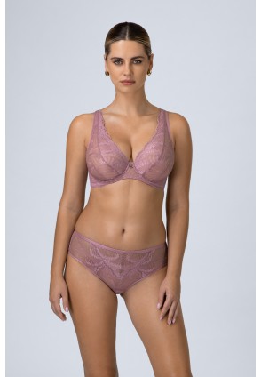 Бюстгальтер-бралетт из коллекции EssenzaRosa выполнен на основе бюста Sublime с мягкими, шитыми из роскошного кружева чашками, продублированными розовой сеткой, на косточках, с дополнительными боковыми поддержками. Пояс кружевной продублирован сеткой. Широкие бретели с подкладкой из мягкого пеноматериала регулируются по длине, не отстёгиваются. На спине застёжка на удлинитель, количество крючков в ряду застёжки увеличивается пропорционально размеру бюстгальтера, фурнитура металлическая цвета розового золота. Бюстгальтер идеально сочетается с трусиками из коллекции EssenzaRosa.