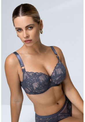 Бюстгальтер LuceViola PU выполнен на основе бюста Sublime, на косточках (на каркасах), с дополнительными боковыми поддержками, чашки шитые, нижняя часть на тонком поролоне телесного цвета, внутренняя сторона проложена хлопковым трикотажем, внешняя и верхняя часть чашки из кружевного полотна, спинка кружевная продублирована телесной сеткой. Бретельки не отстёгиваются, регулируются по длине. На спине застёжка на удлинитель, количество крючков в ряду застёжки, увеличивается пропорционально размеру бюстгальтера, фурнитура металлическая цвета розового золота. Бюстгальтер идеально сочетается с трусиками LuceViola.