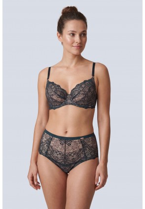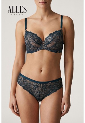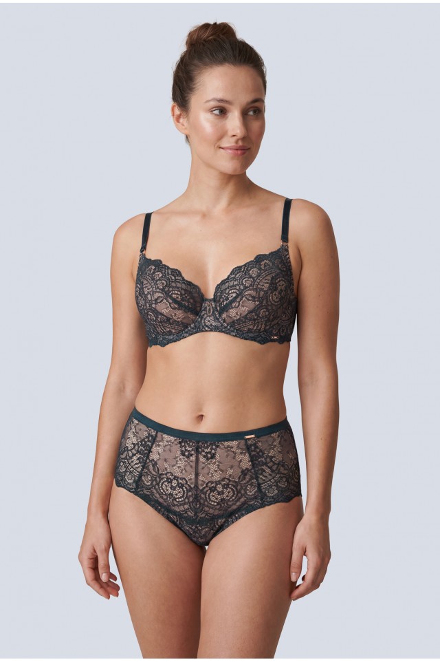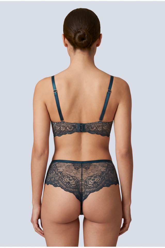 Бюстгальтер Marea P-UP выполнен на косточках, с дополнительными боковыми поддержками, чашки шитые на тонком поролоне, со съёмными пуш-ап вкладышами, внешняя сторона из кружева. Спинка кружевная. Бретельки не отстёгиваются, регулируются по длине. На спине застёжка на удлинитель, фурнитура металлическая цвета меди. Бюстгальтер идеально сочетается с трусиками Marea.
