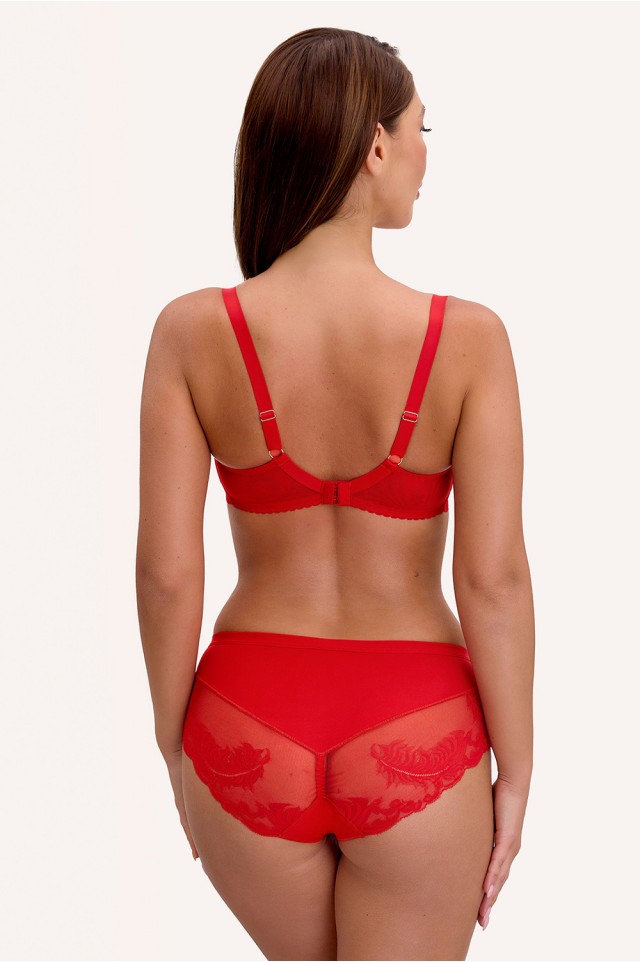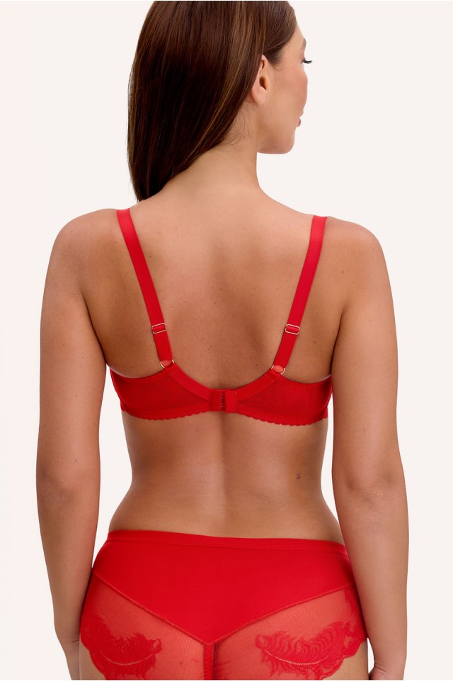 Кружевной мягкий бюстгальтер Fire Swan яркого красного оттенка. Идеально моделирует грудь, придавая ей круглую форму. Слегка диагональная линия нижней части чашки, ведущая к бретельке, позволяет идеально собрать грудь. Кружево в верхней части чаши из эластичной сеточки. Закрытый лиф, создающий полуоткрытый вырез, что обеспечивает идеальную форму большой груди. Подвижные косточки повышают комфорт использования, идеально адаптируясь к телу при каждом движении. Регулируемые лямки устойчивы к растяжению и деформации. Металлические аксессуары золотистого цвета не содержат никель.
