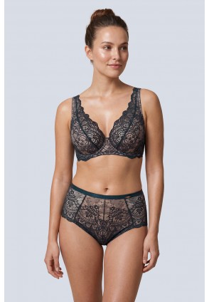 Бюстгальтер-бралетт Marea темно-зеленого оттенка, с мягкой чашкой на косточках, с боковой поддержкой. Внутри чашечки продублированы нежной сеточкой, внешняя сторона чашек покрыта красивым кружевом. Бретели несъёмные, регулируемые по длине. На спинке регулируемая застежка. Между чашек украшение в виде красивой подвески.