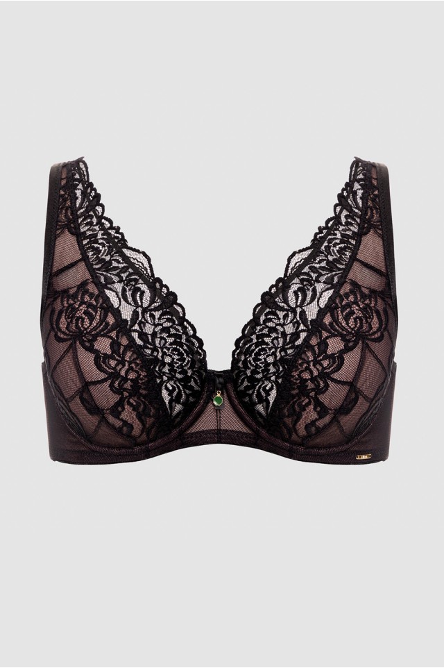 Бюстгальтер-бралетт ,  , для большого бюста Truffle Noir с мягкой чашкой на косточках. Внутри чашечки проложены эластичной сеточкой, внешняя сторона чашек покрыта роскошным кружевом. На спинке застежка на крючки-петли. Данная модель идеально подчеркнет форму вашего бюста, обеспечивая максимальный комфорт и удобство каждый день. Чашки бюстгальтера украшены стрэпами.