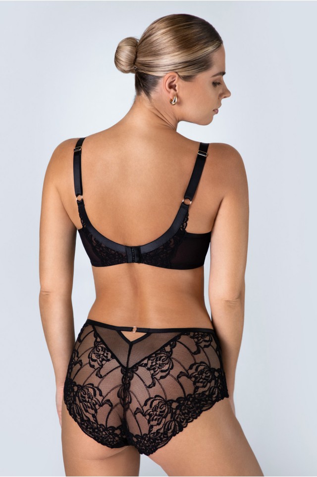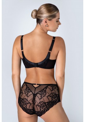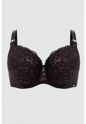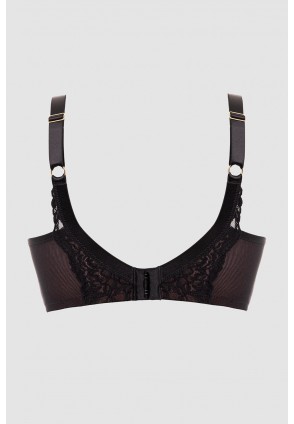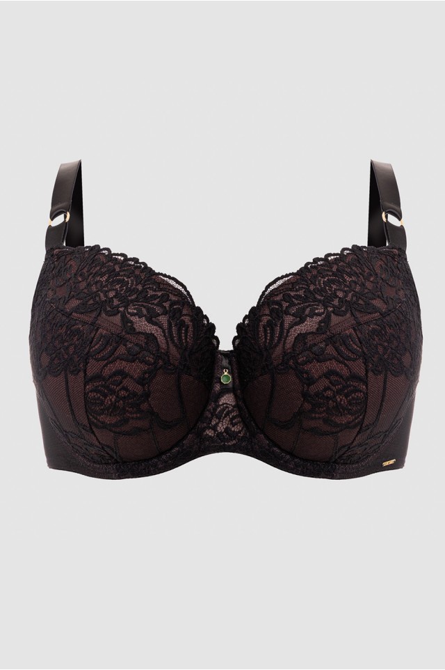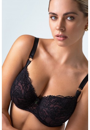 Бюстгальтер Truffle Noir на косточках, с боковой поддержкой, нижняя часть чашки на уплотнителе, верхняя из нежного кружева. Внутри чашечки проложены хлопковым трикотажем. Бретельки не отстегиваются, регулируются по длине. На спинке застежка регулируется.