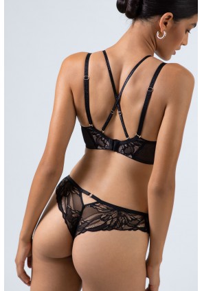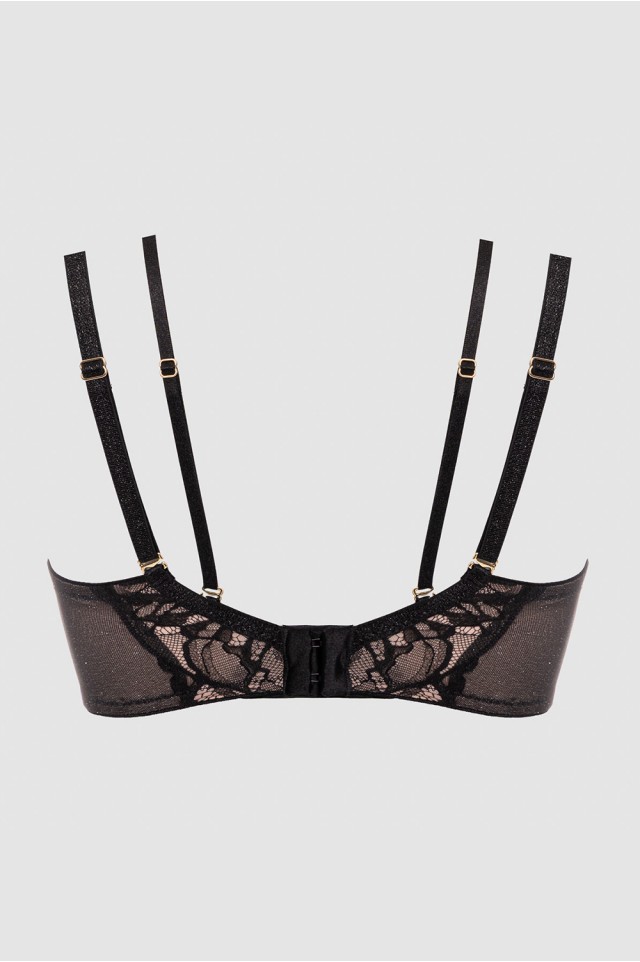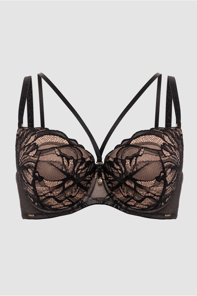 Роскошный бюстгальтер The Icon на косточках. Чашки на тонком поролоне с пуш-ап вкладышами. Внутренняя сторона чашки проложена хлопковым трикотажем, наружная покрыта красивым кружевом. Бретельки регулируются по длине. На спине застежка на крючки-петли. Между чашек красивое украшение в виде подвески и атласного бантика. Чашки поддерживают и приподнимают бюст, сохраняя при этом его естественную форму.