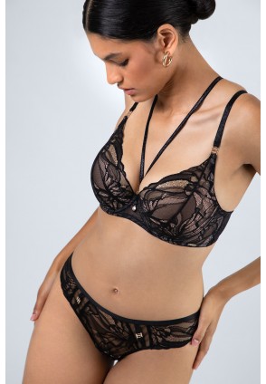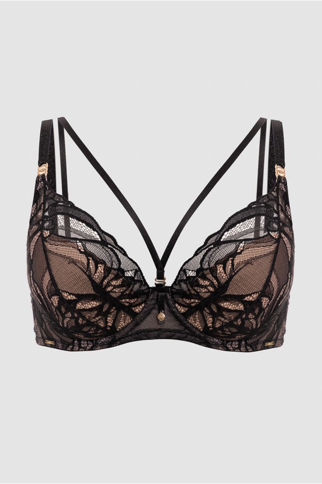 Изысканный бюстгальтер The Icon на косточках. Чашки на тонком поролоне с пуш-ап вкладышами. Внутренняя сторона чашки проложена хлопковым трикотажем, наружная покрыта красивым кружевом. Бретельки регулируются по длине. На спине застежка на крючки-петли. Чашки поддерживают и приподнимают бюст, сохраняя при этом его естественную форму.
