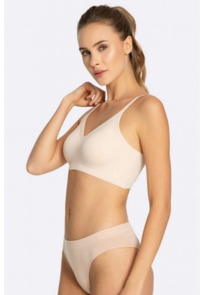 Простой бюстгальтер бесшовный топ из ультра эластичного трикотажа идеально подходит для любого дня. Предназначен для женщин, которые активно живут и ценят комфорт на самом высоком уровне. Бесшовная конструкция и гибкий материал плотно прилегают к телу, обеспечивая полную свободу движений - от утренней тренировки до напряженного дня и вечернего отдыха. Изготовлен из современного ультра гладкого трикотажа с высокой эластичностью, он подходит к любому силуэту, как вторая кожа. Отсутствие боковых швов исключает риск ссадин, раздражения или ощущения дискомфорта. Эластичный ремешок с технологией anti-slip bonding, расположенный в нижней части, соединяющий вставки бюстгальтера, обеспечивает стабильность и предотвращает их скольжение. Он не стесняет движений, оставаясь на месте – независимо от того, что вы делаете. Тонкий, усиленный дизайн задней части верха стабилизирует, моделирует спину и улучшает комфорт при ношении. Тонкие (12 мм) регулируемые плечевые ремни адаптируются к индивидуальным потребностям. Топ не выделяется и не просвечивает под одеждой, легкий и быстросохнущий.