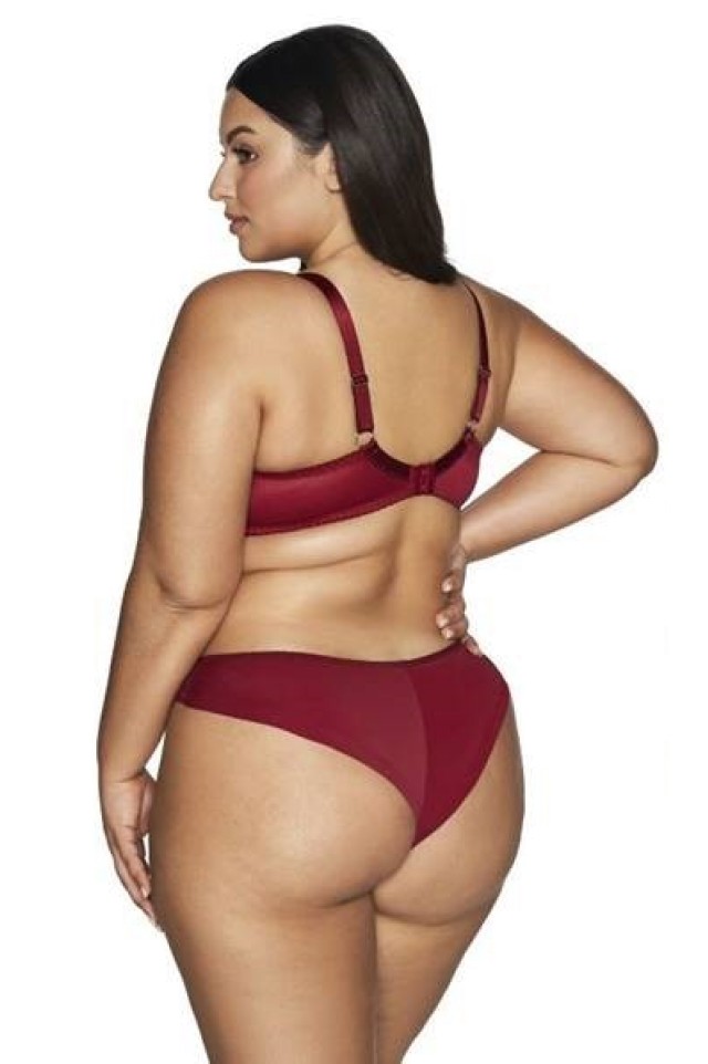 Трусики бразильяна из коллекции АVA 1030 в цвете рубин спереди из кружевного полотна, продублированы хлопковым трикотажем, сверху узкая полоска сетки с вышивкой, спинка из микрофибры. Ластовица проложена 100% хлопком. Трусики идеально комплектуются с бюстгальтером арт. 1030