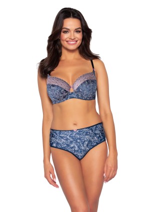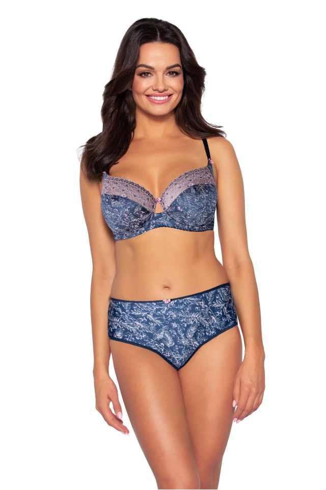 Трусы слип арт. 1886/1 со средней линией талии выполнены из трикотажа с растительным рисунком, на спинке проймы ножек украшены широким цветным кружевом. Ластовица из 100% хлопка. Сочетается с бюстами 1886/1.
