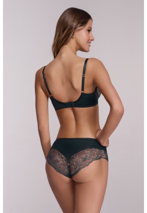 Трусики слип со средней линией талии АVA 2175 выполнены в цвете Azure (лазурный) из эластичного трикотажного полотна и изумрудного кружева, украшенного золотым цветочным узором. Ластовица проложена 100% хлопком. Трусики идеально комплектуются с бюстгальтером арт. 2174, 2175.