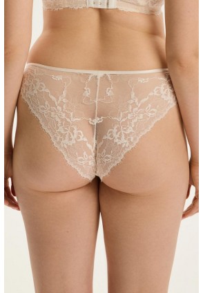 Трусы слипы Cloe обволакивают силуэт замысловатым кружевом, который рисует на коже нежный растительный орнамент. Тонкий волнистый край мягко ведет линию бедер, а передняя часть складывается в букву "V", красиво подчеркивая пропорции. Светящийся кремовый оттенок подчеркивает легкость и неземной характер модели.
