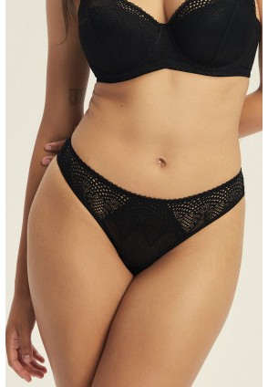 Чёрные стринги Marvel сочетают в себе классическую элегантность и чувственность. Мягкая резинка с ажурной растительной вышивкой облегает переднюю часть, а прозрачная задняя часть с глубоким вырезом деликатно подчёркивает округлости. Спереди на подкладе из микросетки.