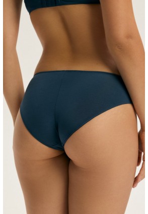Слипы Comfie в темно-синем цвете - это сочетание минималистской формы и инновационного материала TENCEL™, созданного из натуральных целлюлозных волокон. Они мягко обвивают тело, подчеркивая изгибы и создавая гладкую линию бедер. Их сверхлегкая структура обеспечивает мягкость на ощупь и воздухопроницаемость, благодаря чему модель отлично подходит для повседневной носки и в комплекте с бюстгальтером Comfie. Это выбор для женщин, которые ценят экологически чистые решения и в то же время хотят чувствовать себя особенно женственно. Хлопковая ластовица.