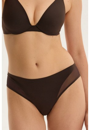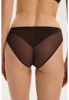 Слипы Cleary в глубоком шоколадно-коричневом цвете сочетают современный минимализм с нежной чувственностью. Деликатный эластичный материал мягко прилегает к телу, создавая линию, которая ненавязчиво подчеркивает женскую фигуру. Вставки из прозрачной сетки придают изделию лёгкость и современный вид, создавая эффект гармоничного контраста. Эта модель для женщин, которые ценят повседневный комфорт, но не отказываются от элегантности в мельчайших деталях. Хлопковая ластовица. Сеточка: 84% полиамид, 16% эластан.