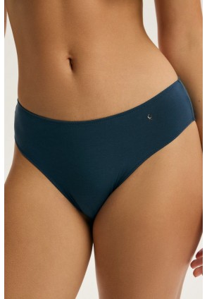 Бразильяно Comfie с завышенной линией талии в темно-синем цвете - это сочетание минималистской формы и инновационного материала TENCEL™, созданного из натуральных целлюлозных волокон. Они мягко обвивают тело, подчеркивая изгибы и создавая гладкую линию бедер. Их сверхлегкая структура обеспечивает мягкость на ощупь и воздухопроницаемость, благодаря чему модель отлично подходит для повседневной носки и в комплекте с бюстгальтером Comfie. Это выбор для женщин, которые ценят экологически чистые решения и в то же время хотят чувствовать себя особенно женственно. Хлопковая ластовица.