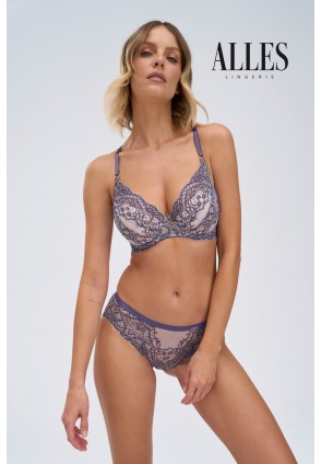 Трусики бразильяна из коллекции BaroqueUltra выполнены из роскошного кружева. Ластовица проложена 100% хлопком телесного цвета. Оттенок ультрафиолета, переливающийся в искусно сотканных нитях, создаёт гипнотический узор на лёгком, почти невесомом фоне изысканного голубого цвета. Этот оттенок, приглушённый морскими полутонами, придаёт модели благородство и глубину.