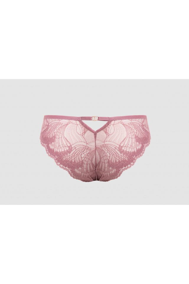 Трусики бразильяна из коллекции EssenzaRosa выполнены из кружева, на спинке и спереди V-образные вырезы, фурнитура металлическая цвета розового золота. Ластовица проложена 100% хлопком.