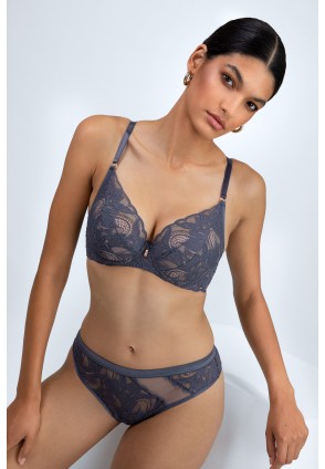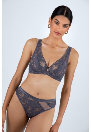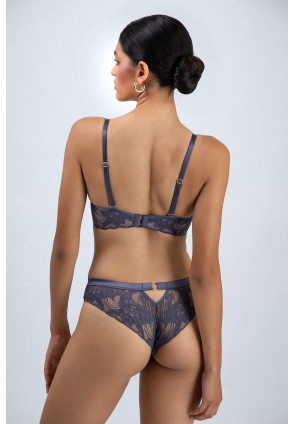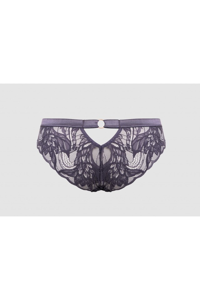 Трусики бразильяна из коллекции LuceViola выполнены из кружева, на спинке V-образный вырез, фурнитура металлическая цвета розового золота. Ластовица проложена 100% хлопком телесного цвета.
