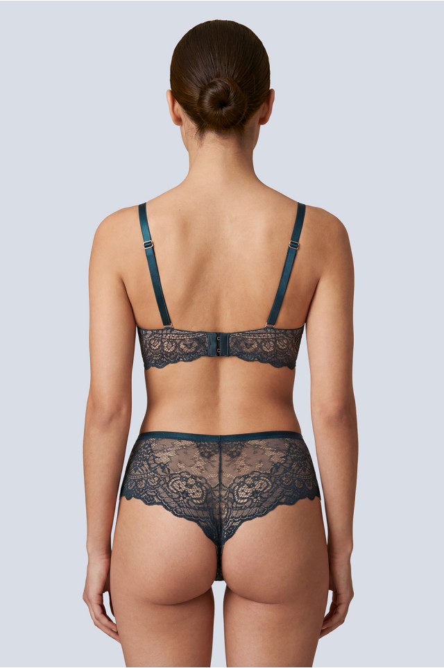 Высокие кружевные трусики-стринги Marea темно-зеленого цвета. Ластовица хлопковая.