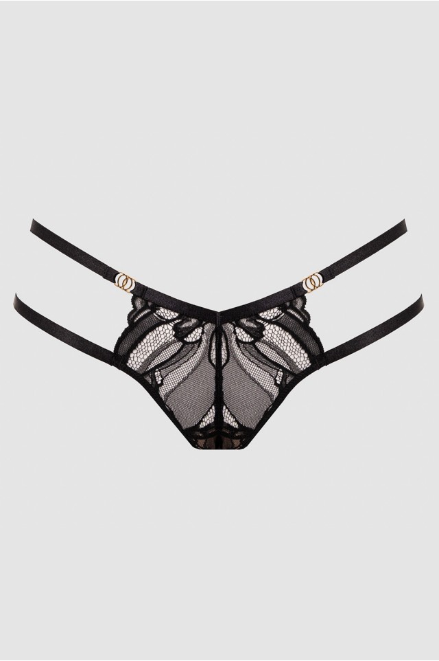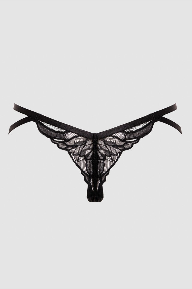 Кружевные трусики-стринги The Icon средней посадки. Выполнены из эластичной сетки и ажурного кружева. Ластовица хлопковая.